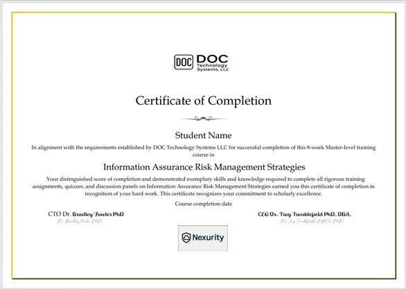 You are required to earn a C grade or higher to pass this course. All course procedural activities and assessments are graded in alignment with the grading rubric; there is a total of 1000 points to be earned to get an A. Successful completion of this course and all assignments are required to earn full points. Upon completion, you will receive a Certificate of Completion from DOC Technology Systems LLC.